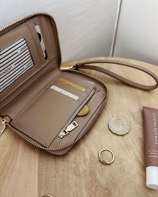 The Eden Wallet is a small wallet for women who value effortless style, everyday function, and secure organisation. Crafted from buttery soft vegan leather, this compact companion features seven card slots, a spacious note compartment, and a zip coin pocket - keeping your essentials neatly in place. Designed as a secure RFID blocking wallet with a wristlet, Eden Black offers peace of mind and hands-free convenience, whether you’re running errands, travelling light, or heading out for the evening. Finished with a detachable wristlet and sleek silhouette, she’s the perfect balance of practicality and polish.