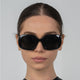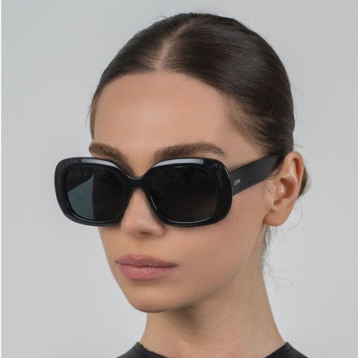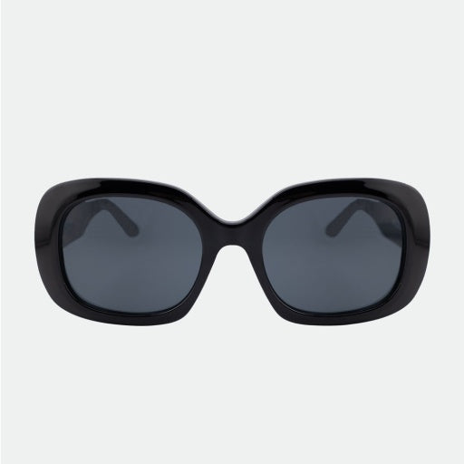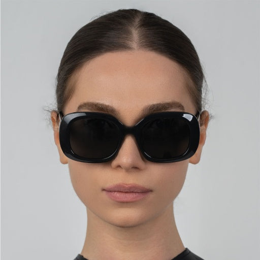 Striking and sophisticated, Valerie showcases a bold, thick rounded frame sunglass in glossy Black, balanced by cool Smoke lenses for a sleek, modern aesthetic.