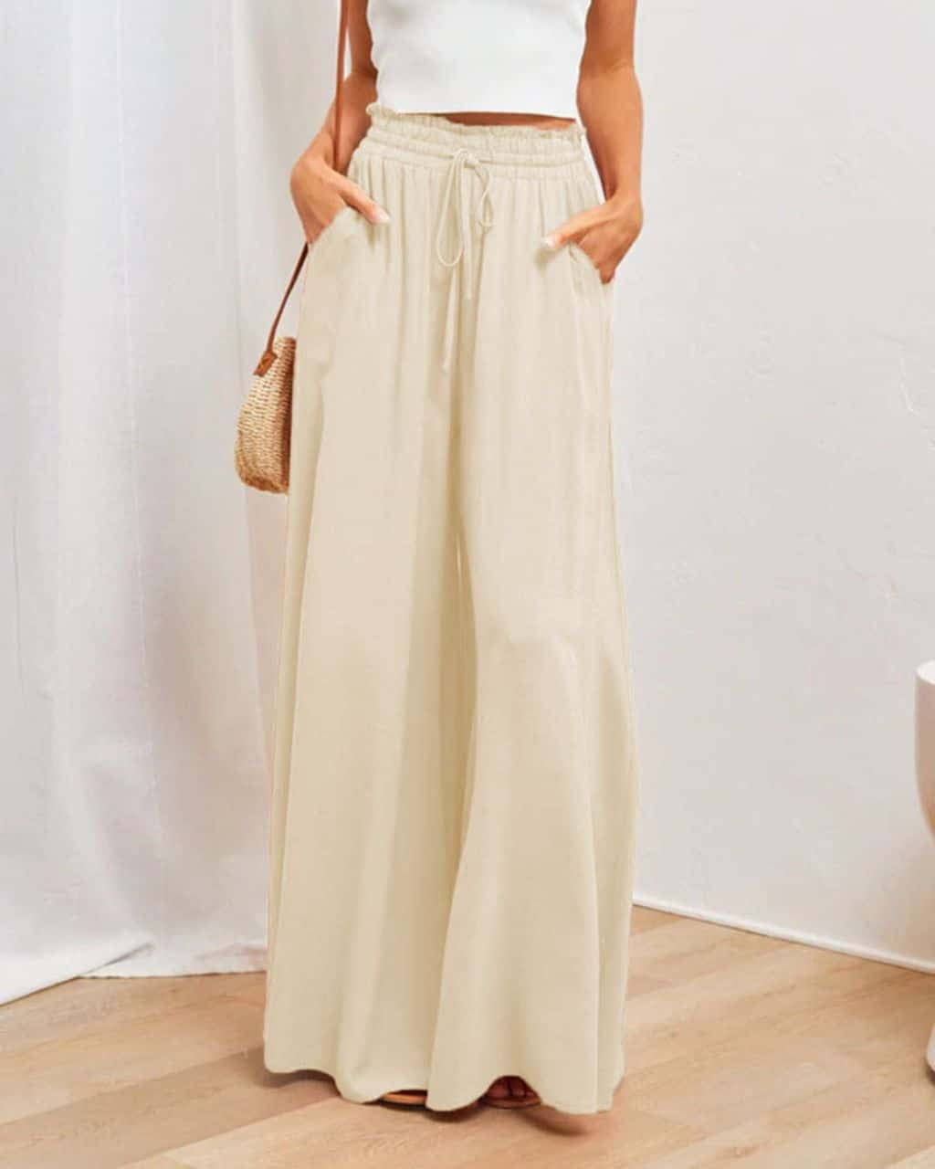 Elastic Waist Wide Leg Pants