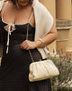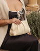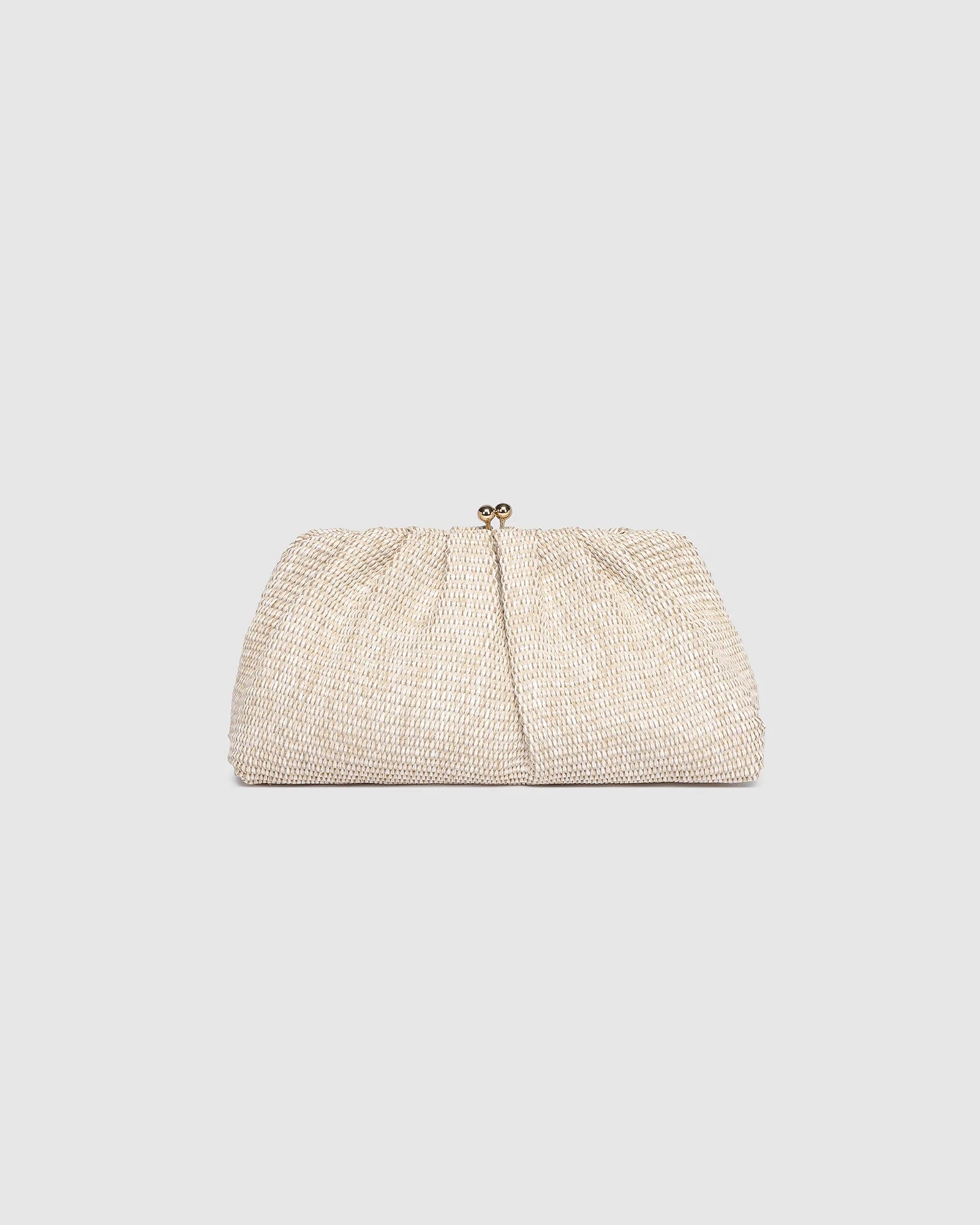 The Goldie Raffia Vanilla Clutch is your statement plus-one for any occasion, designed to elevate your look from daytime celebrations to evening soirées. This evening clutch features a slouchy yet structured silhouette, crafted in a raffia-like texture for a modern take on timeless texture. As a true gold chain clutch, Goldie Raffia Vanilla is finished with both a short and long gold chain strap, giving you the freedom to wear her in hand, over the shoulder, or crossbody. A polished kiss clip closure keeps your essentials secure, while her lightweight design ensures effortless wear. Striking the perfect balance between relaxed charm and refined design, Goldie Raffia Vanilla is the accessory that brings a touch of shine to every moment - from long lunches to late nights.