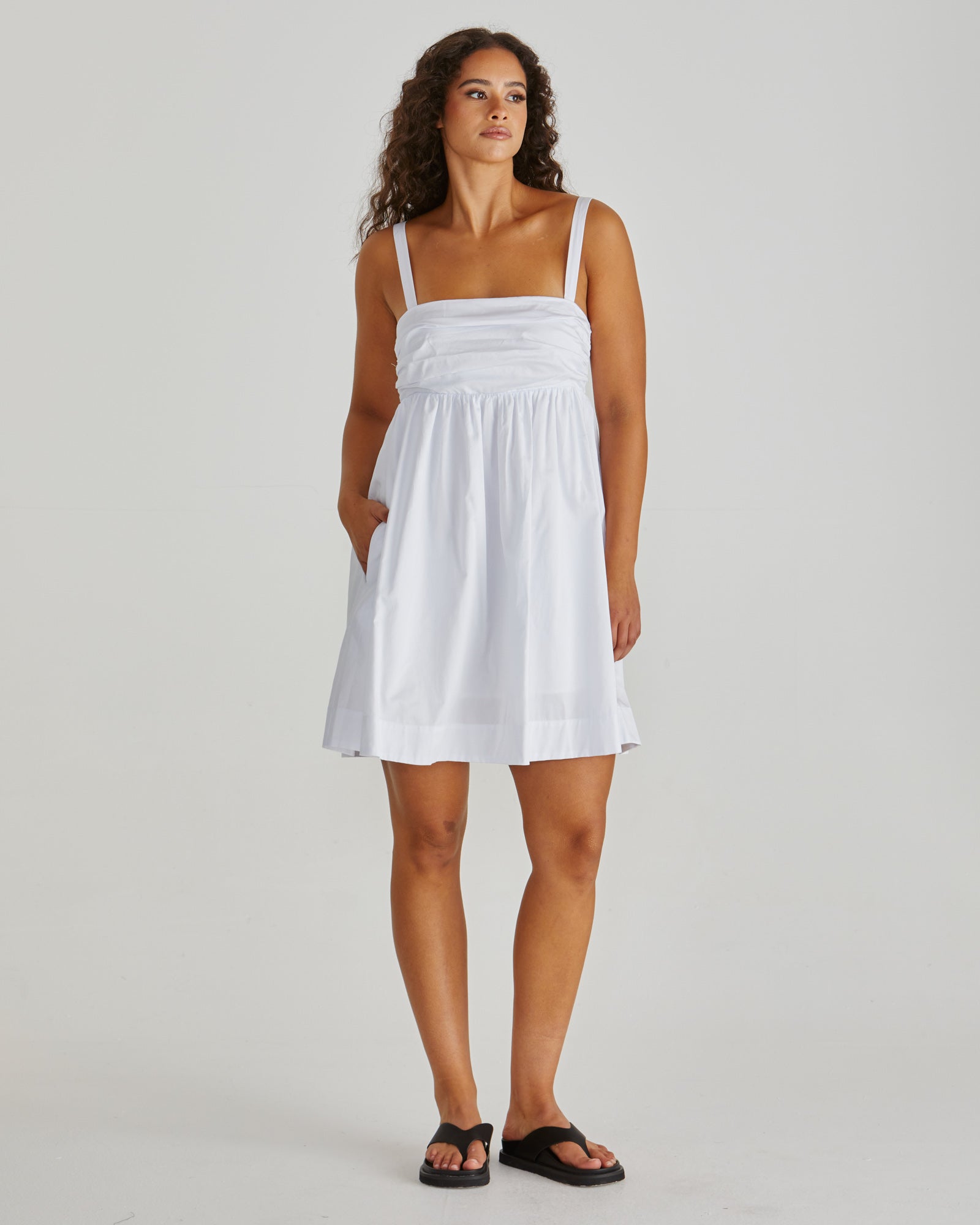 The Laurie Mini Dress is the definition of cute and easy. Designed with ruched bust detailing, adjustable straps and a shirred back, it fits like a dream. Lined for comfort and finished with a feminine silhouette. Effortless, flattering and fun.