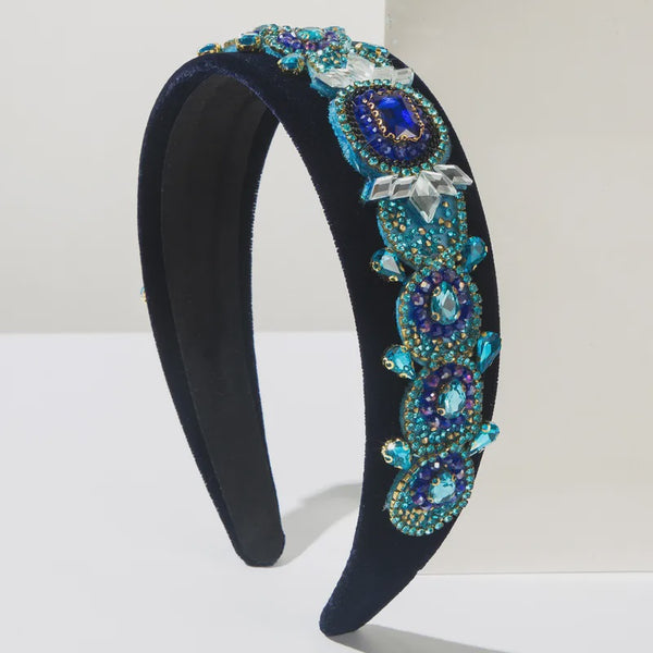Elevate your raceday look with this stunning blue jewelled headband. Adorned with sparkling embellishments, it's the perfect accessory to add glamour and sophistication to your outfit. Whether you're heading to the races or a special occasion, this baroque-inspired piece catches the light beautifully and completes your ensemble with effortless elegance.