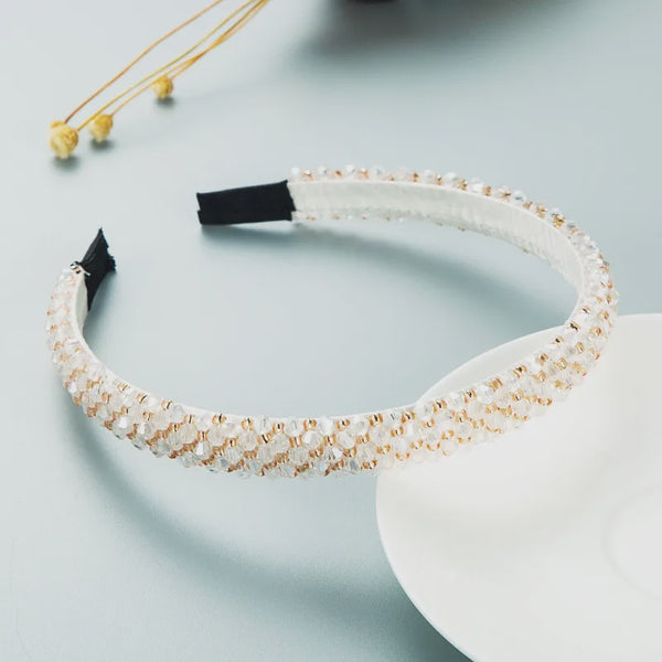 Krissy Beaded Headband in White/ Coffee