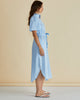 The Immie Dress combines relaxed elegance with timeless appeal. Featuring a stand collar, button-up front and elasticated waistband, it creates a flattering yet comfortable shape. The curved hem and self-fabric waist tie add soft sophistication. An effortless transeasonal piece that feels classic and elevated.