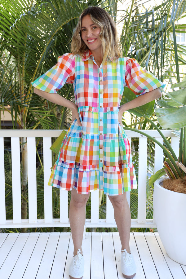 The Gelato Dress is a burst of bright, fun colours that bring joy to any wardrobe. Designed with playful buttons down the centre and made from soft, breathable 100% cotton, it’s as comfortable as it is cheerful. Pockets add a handy touch, making this dress perfect for sunny days filled with adventure and smiles.