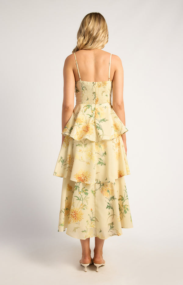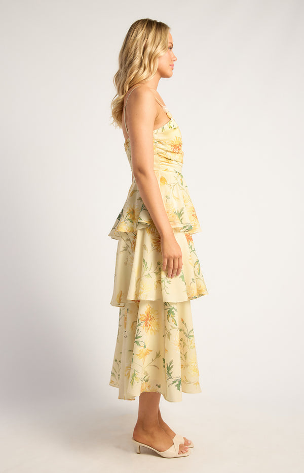 Featuring delicate straps, a flattering bodice with a shirred back, and cascading layers of soft floral print, this dress is the definition of timeless romance. Whether you're a guest or the main event, Juliette guarantees all eyes on you.