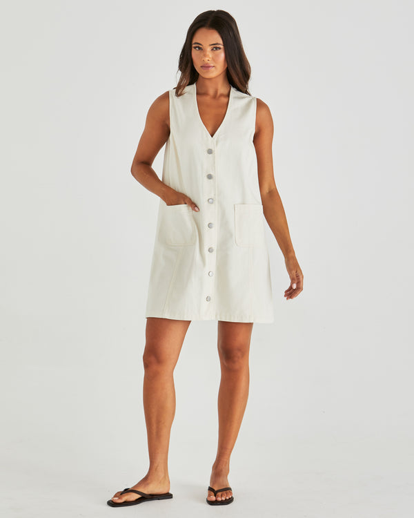 Part dress, part statement. The Sabine Denim Vest Dress blends soft denim with patch pockets and contrast stitching for an on-trend, elevated finish. Wear it solo or layered—either way, it’s a vibe.