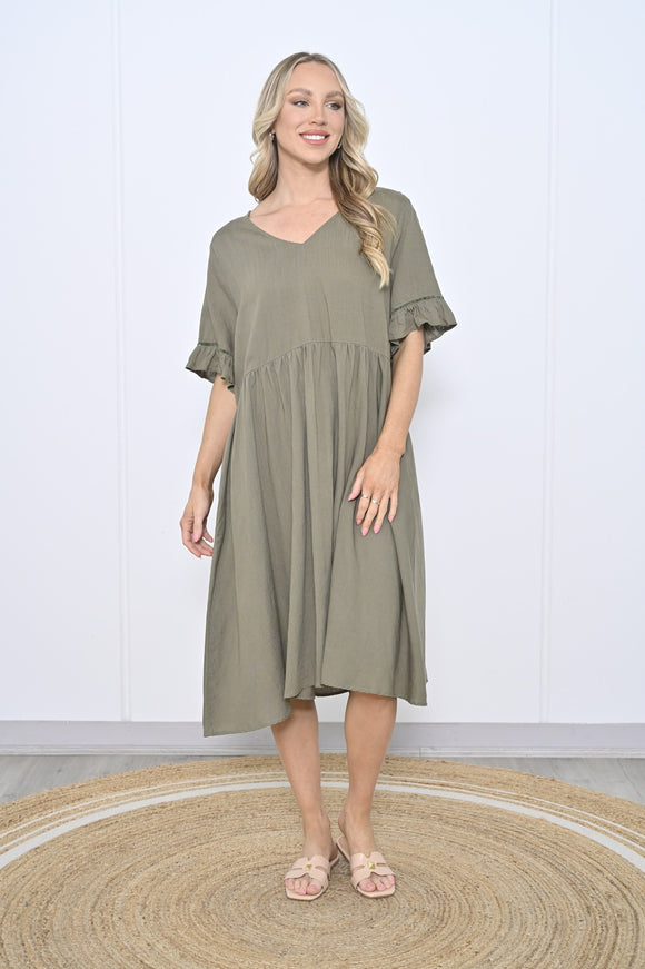 June Linen Dress in Khaki