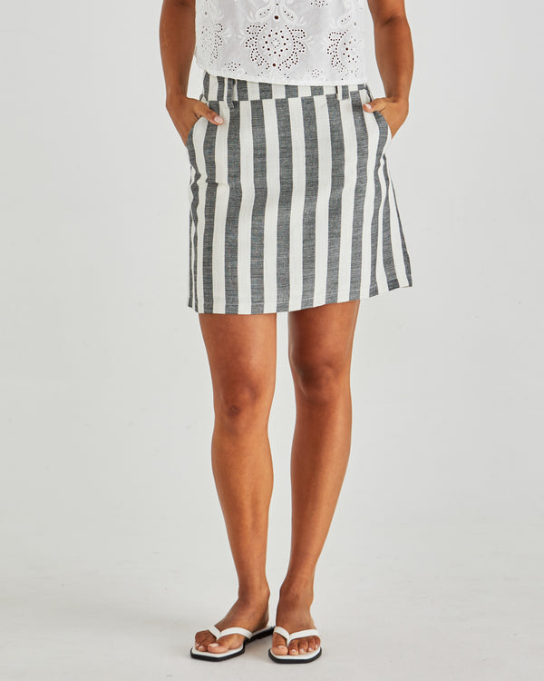 With a subtle texture and invisible zip, the Nevada Skirt is all about clean lines and effortless style. Its straight fit and practical pockets make it a summer staple with a bit of edge.
