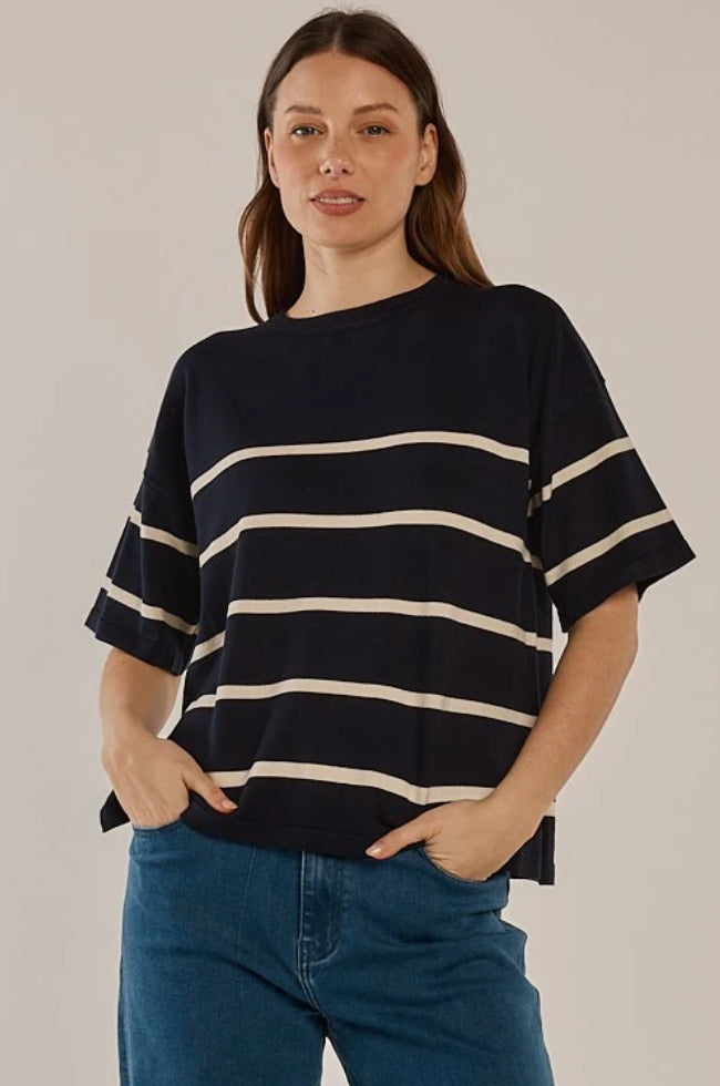 Bailey Boxy Top in Navy Cream