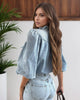 Callie Denim Blouse - Light Wash - XL is backordered and will ship as soon as it is back in stock.