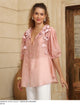 The Kara Flower Blouse in Pink, a playful piece adorned with beautiful floral details. Its delicate design adds a fresh, feminine touch to any outfit, perfect for days when you want to feel effortlessly charming.