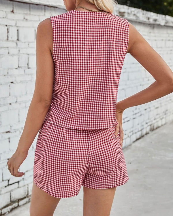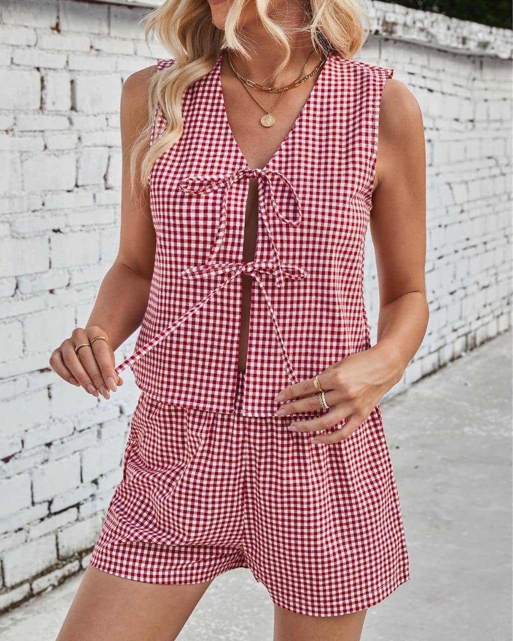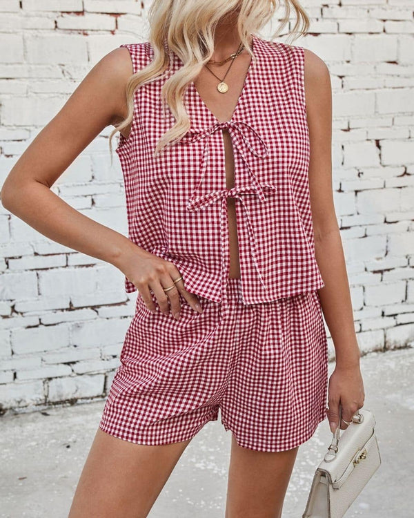 Red Gingham Set - XL is backordered and will ship as soon as it is back in stock.