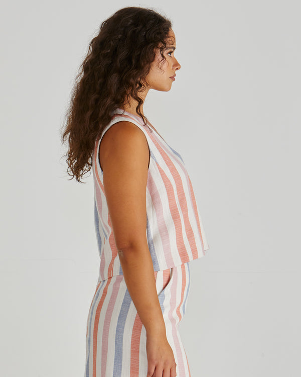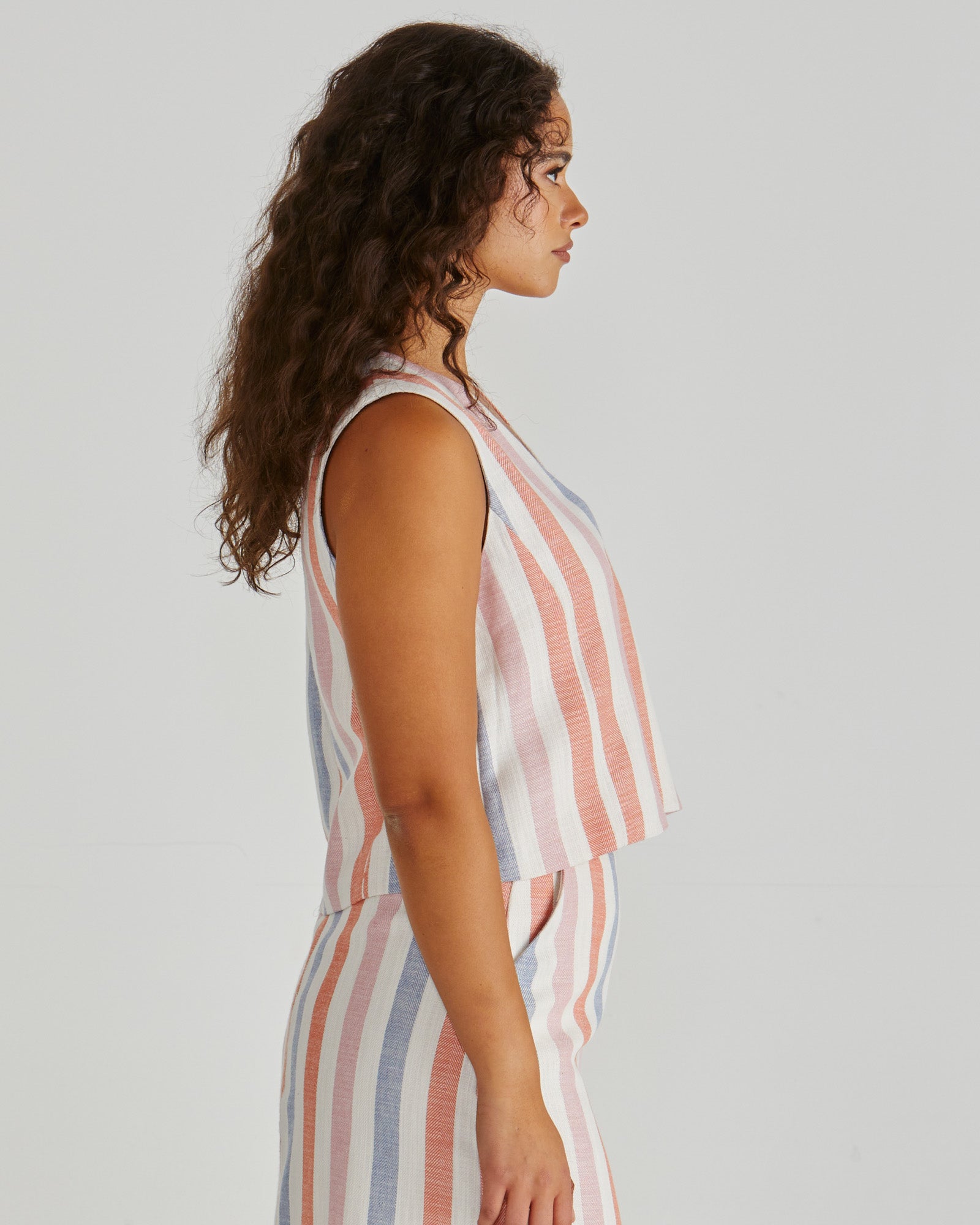 The Travis Vest brings cool-girl tailoring to your everyday wardrobe. With mock horn buttons and princess seams, it’s chic and easy. Pair it back with the matching skirt or denim.
