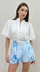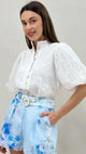 Crafted from delicate soft lace, the Viola Floral Blouse features a beautiful floral white floral detail that enhances its feminine charm. Its balloon sleeves create a flattering shape, while elegant gold button accents add a refined touch. This blouse offers both comfort and style, making it a lovely choice for any occasion.