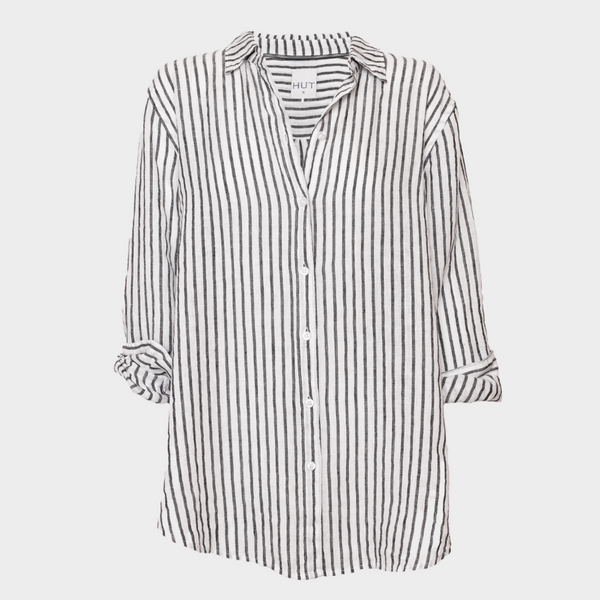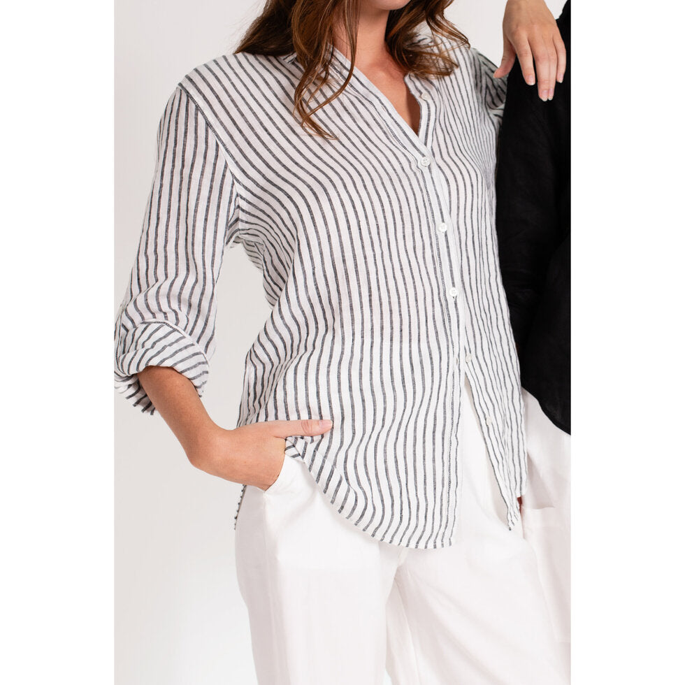Black Yarn Dye Stripe Boyfriend Linen Shirt