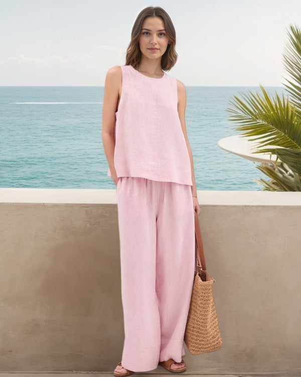 Drift Linen Blend Pants in Baby Pink - S is backordered and will ship as soon as it is back in stock.