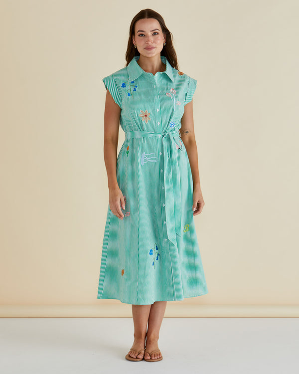 The Gloria Floral Dress offers a relaxed fit in soft cotton feel fabric with a button-up collar front. Sleeve cuffs and set-in sleeves add elevated, classic details. Comfortable and easy to wear, this dress is a timeless transeasonal essential.