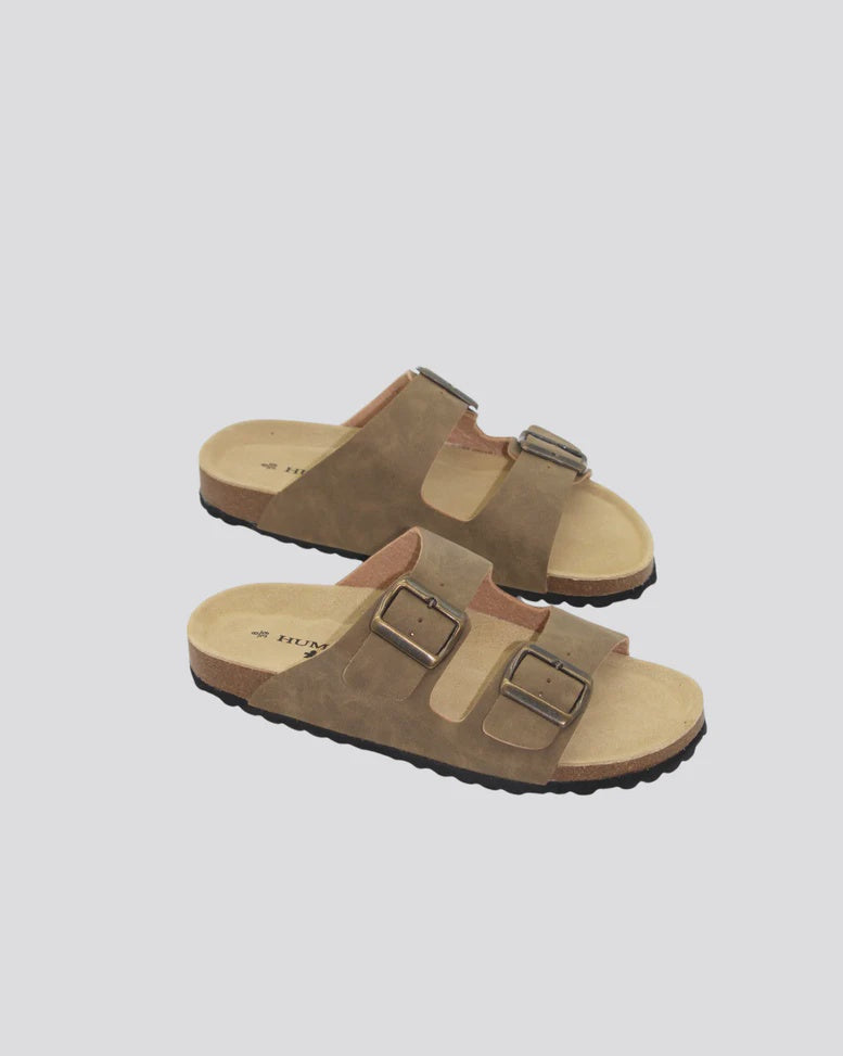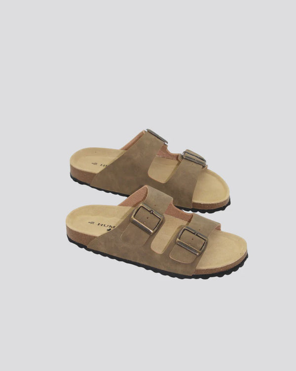Double buckle slip on sandal with moulded sole• Non leather upper• leather innersole • Metal buckles• Designed in Australia• Made in Vietnam