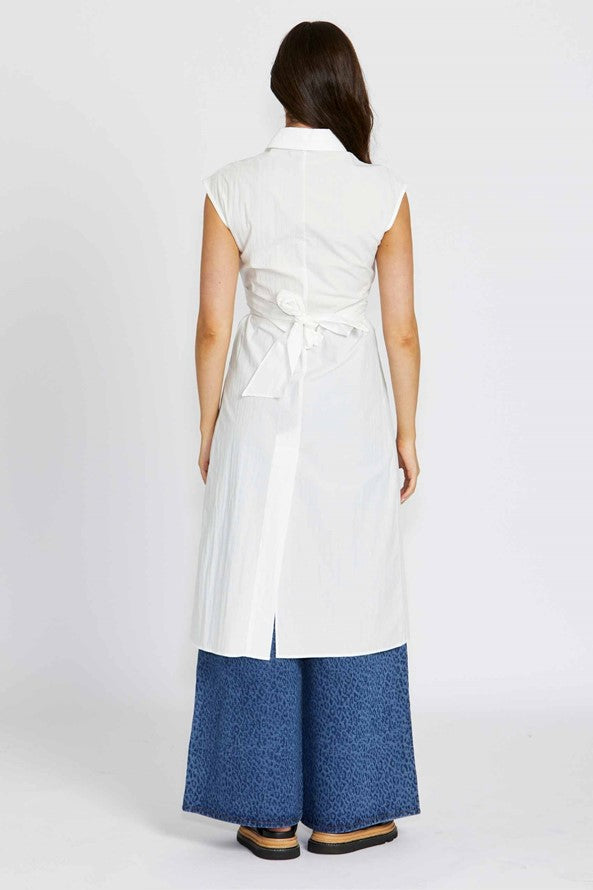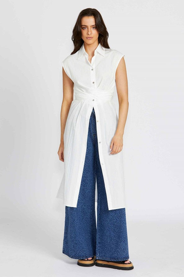 A crisp cotton poplin shirt with a clever, flexible design. Wear it buttoned up or styled open for a more relaxed look. Clean, easy, and endlessly wearable.