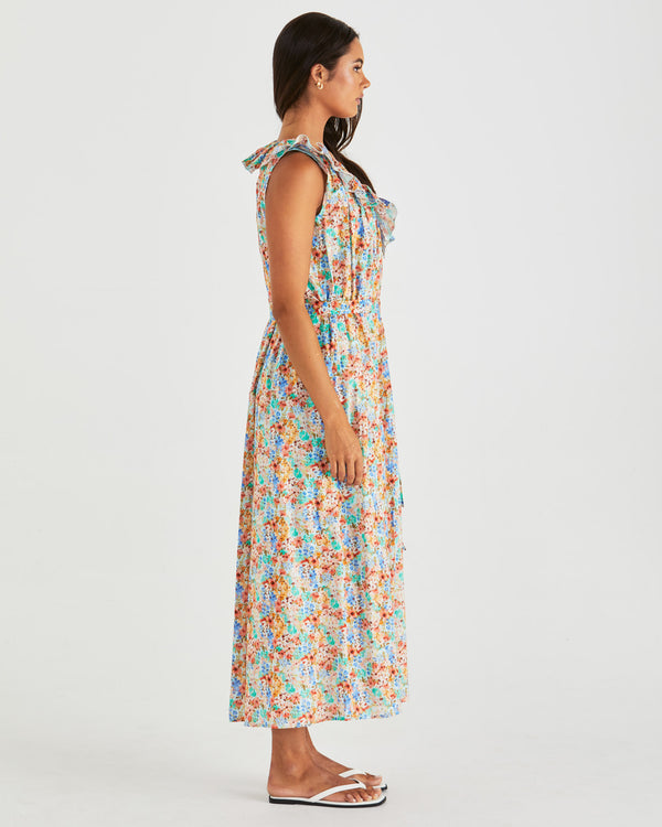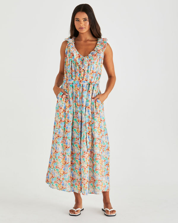 The Panna Ruffled Neck Dress is the kind of effortless style we love—floaty, flattering, and full of soft detailing. Finished with a tie belt and easy pockets, it’s made for sunny weekends and long lunches.