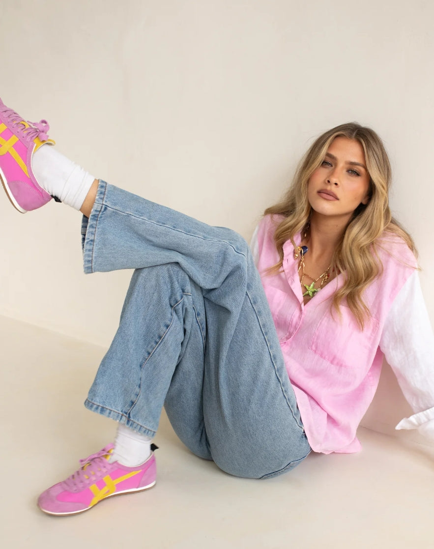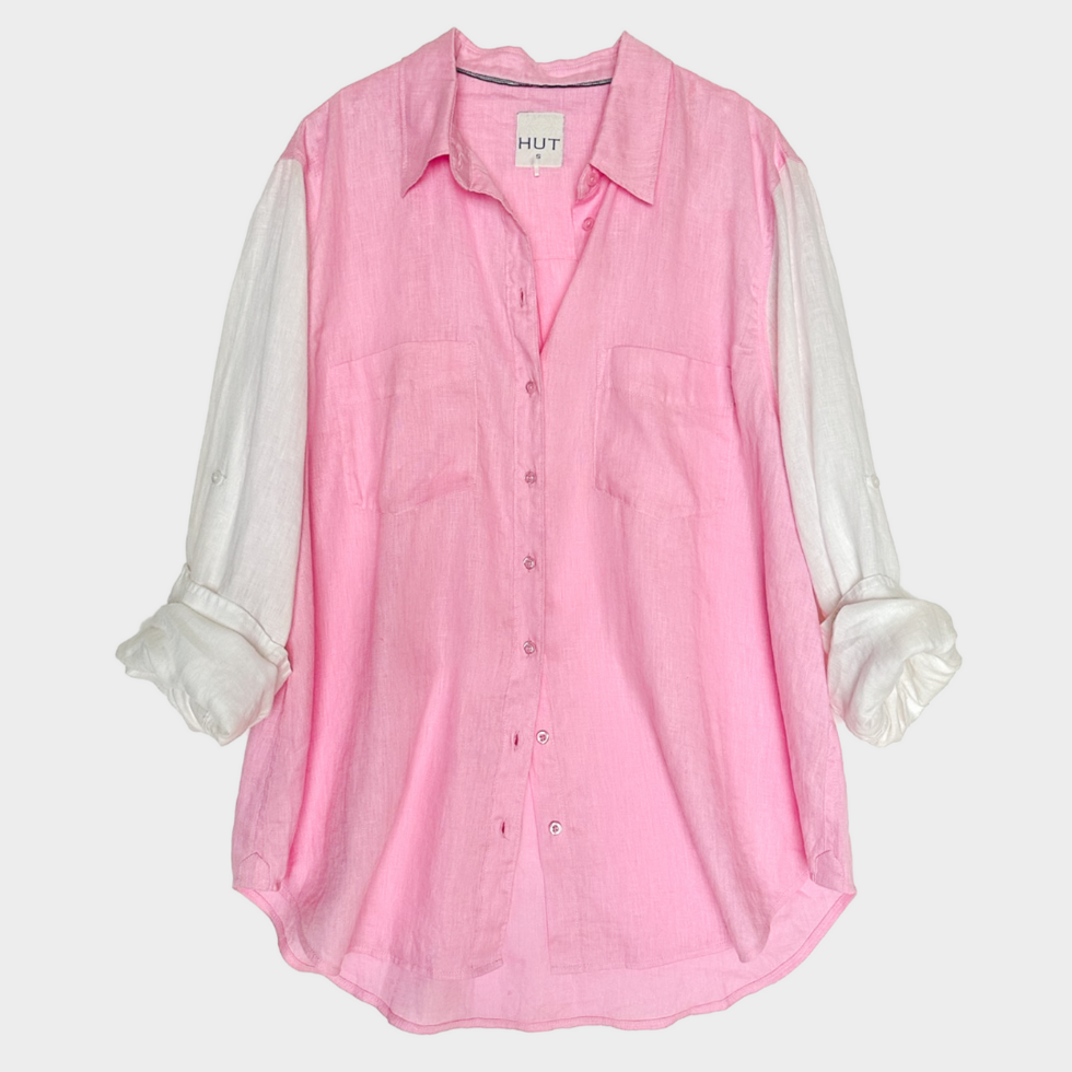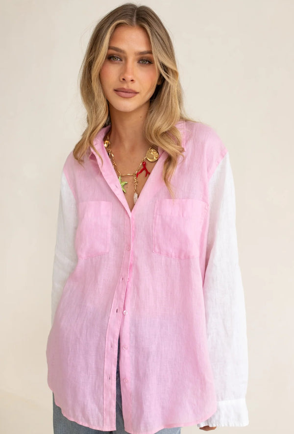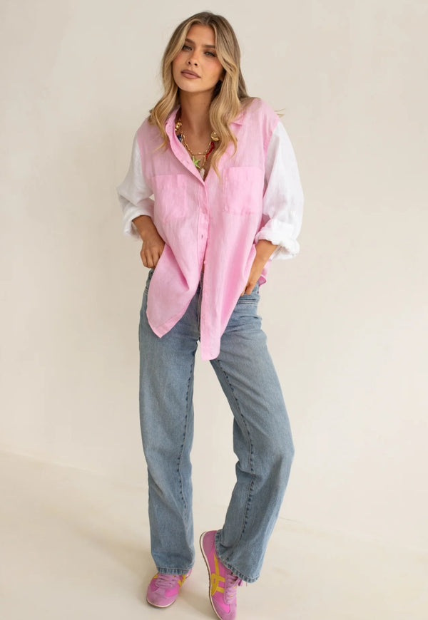 Pink-A-Boo Splice Boyfriend Linen Shirt