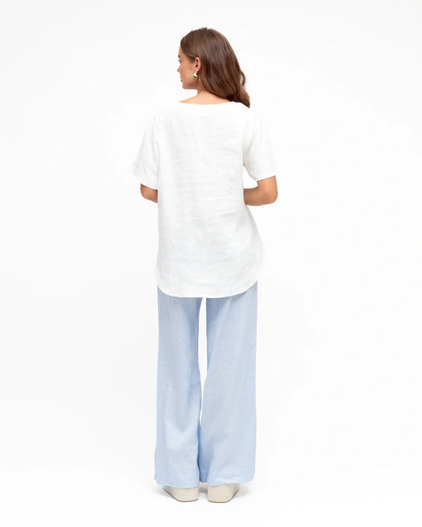 Tessa Linen Tie Front Top in White - 8 is backordered and will ship as soon as it is back in stock.